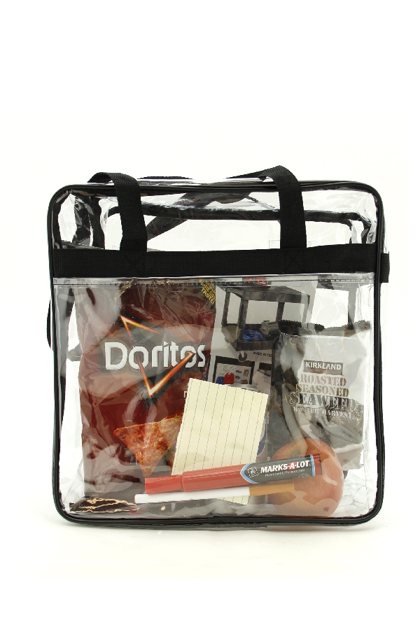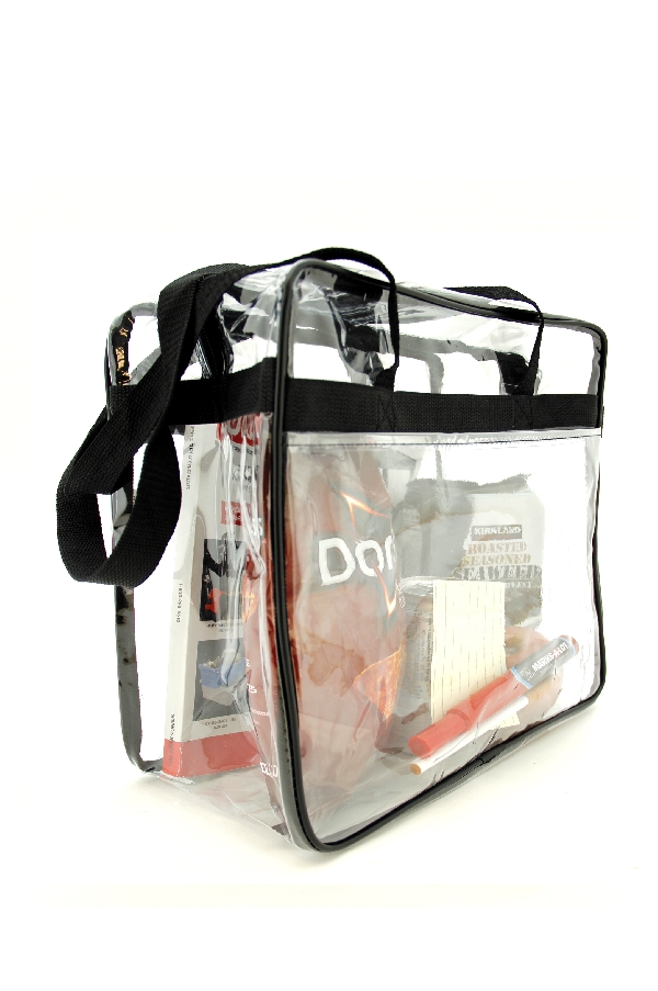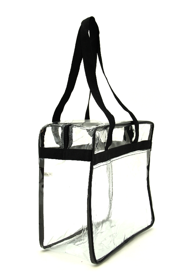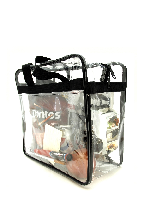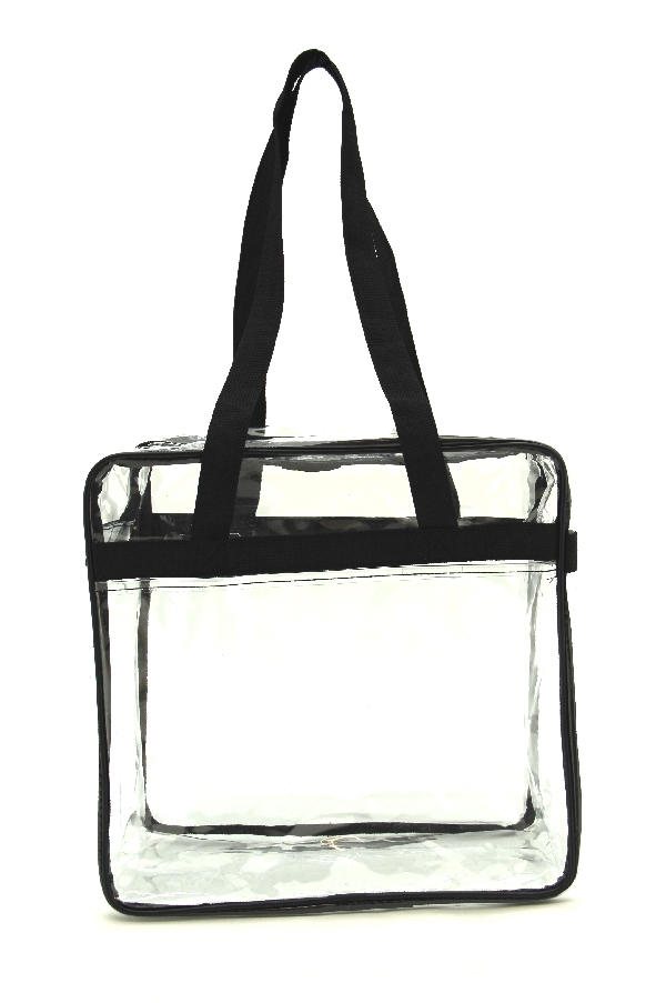 NFL spec sized stadium tote bag with black piping. Made with clear PVC and designed for easy access through security check points.