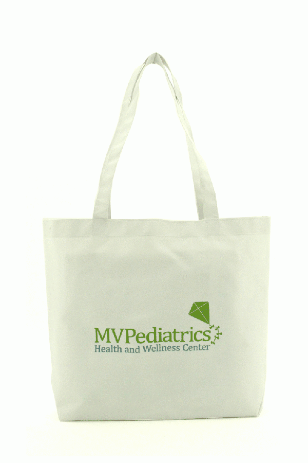 Medium sized, multifunctional tote bag with 27” matching self fabric handles, open main compartment and large imprint area on both sides.