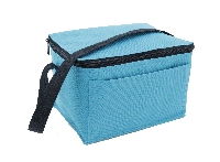 Classic 6 pack cooler with top zippered closure, webbed shoulder strap and open front pocket. Fully insulated with lead free PEVA lining and is heat sealed and leak proof.